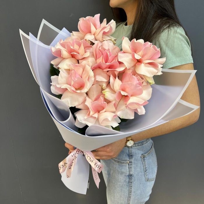 7 нежно-розовых французских роз