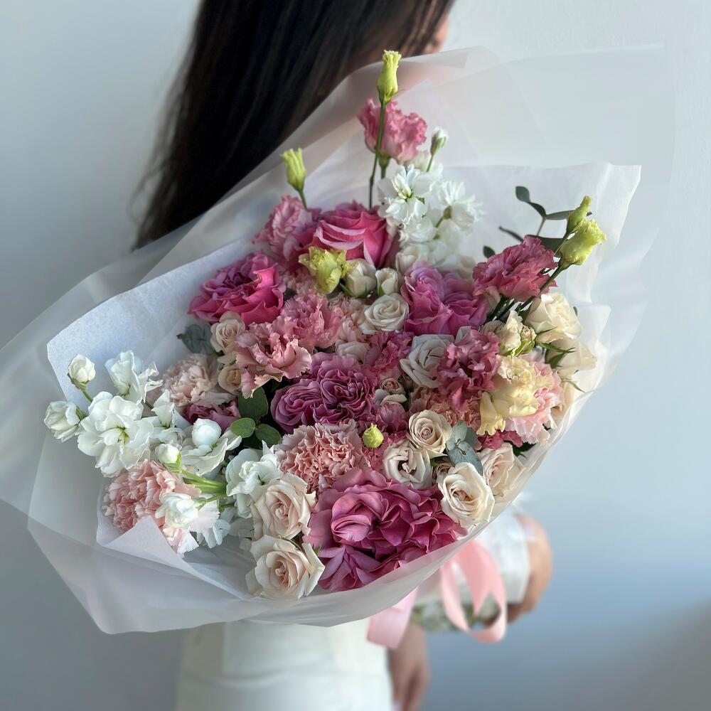 Категорий: Гвоздики, Кустовые розы, Лизиантусы, Пионовидные розы, Розы