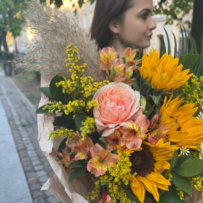 Категорий: Альстромерии, Пионовидные розы, Подсолнухи, Розы, Ромашки, Сухоцвет