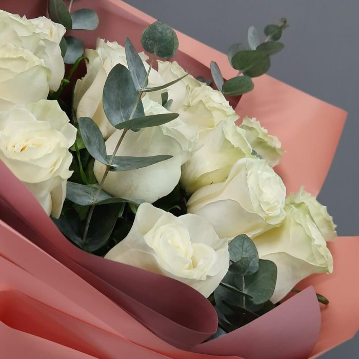 Роза mondial – 15 шт.Эвкалипт – 5 шт.Упаковка дизайнерская – 3 шт.