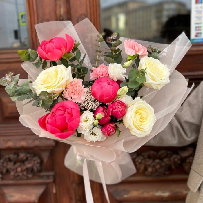 Категорий: Гвоздики, Лизиантусы, Пионовидные розы, Розы, Тюльпаны