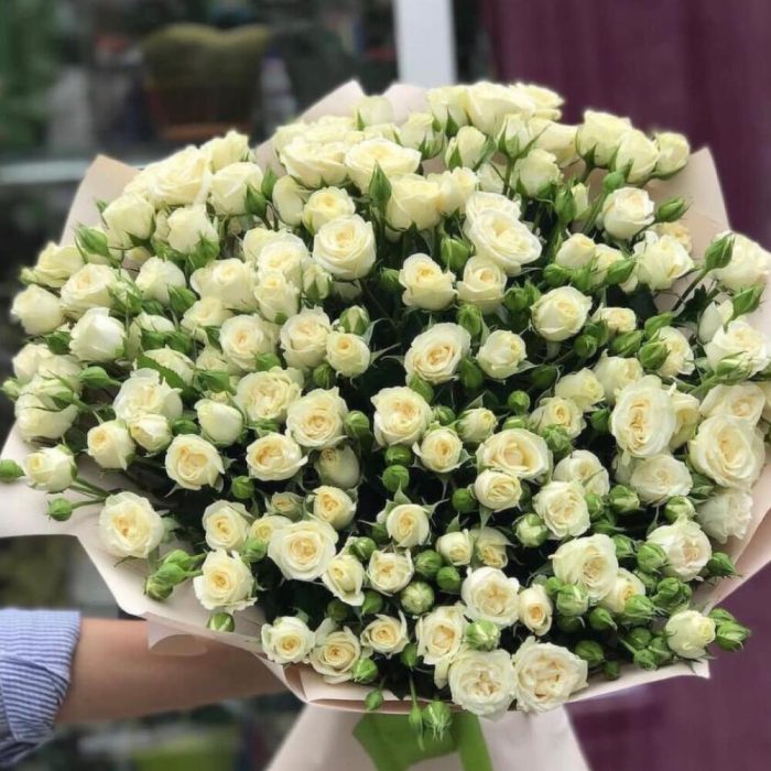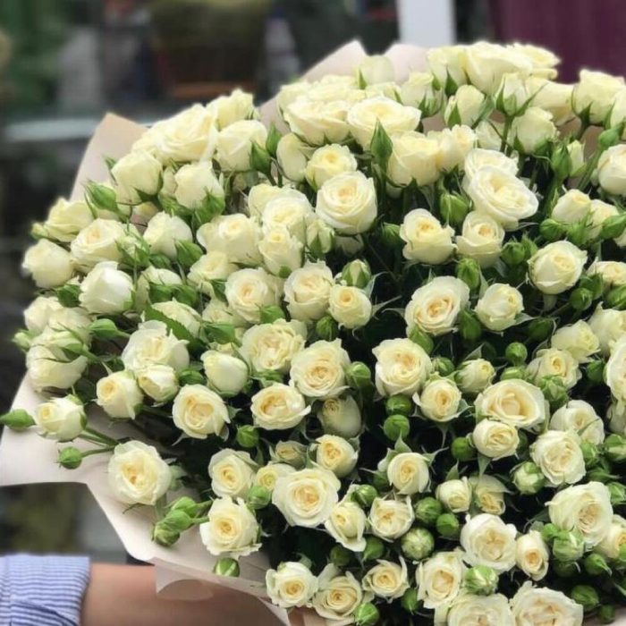 Роза кустовая пионовидная – 101 шт.Упаковка дизайнерская – 1 шт.Лента атласная – 2 шт.Открыточка с вашими пожеланиями – 1 шт.хорошее настроение – 100 шт.инструкция по уходу за цветами – 1 шт.коробка переноска – 1 шт.Кризал – 1 шт.