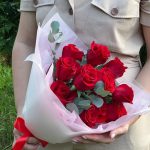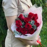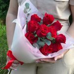Роза фридом 50 см – 11 шт.Эвкалипт – 3 шт.Дизайнерская упаковка – 2 шт.