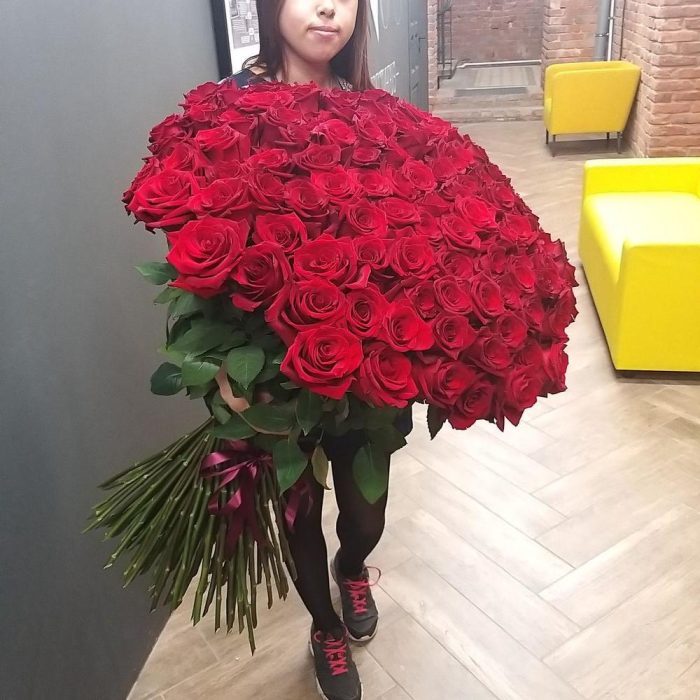роза красная 90 см – 151 шт.Лента атласная – 2 шт.