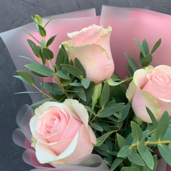 Роза – 3 шт.Эвкалипт – 1 шт.Упаковка дизайнерская – 2 шт.