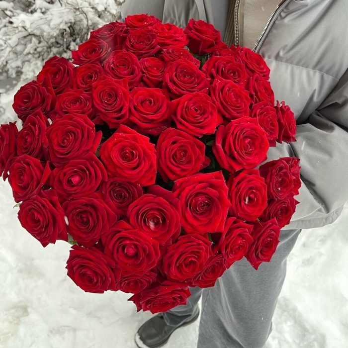 Букет из 51 красной розы 35-40 см (Кения) под ленту