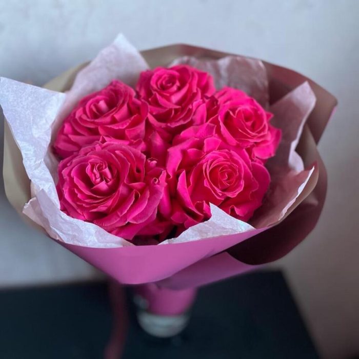 Одноголовая роза – 5 шт.декоративная упаковка – 1 шт.Атласная лента – 1 шт.