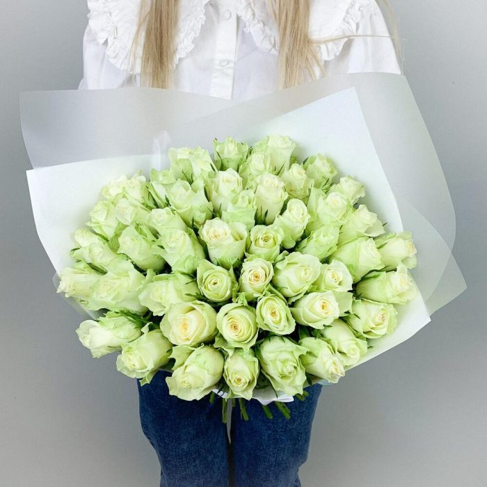 Букет из белых роз Кения 40см 51 шт