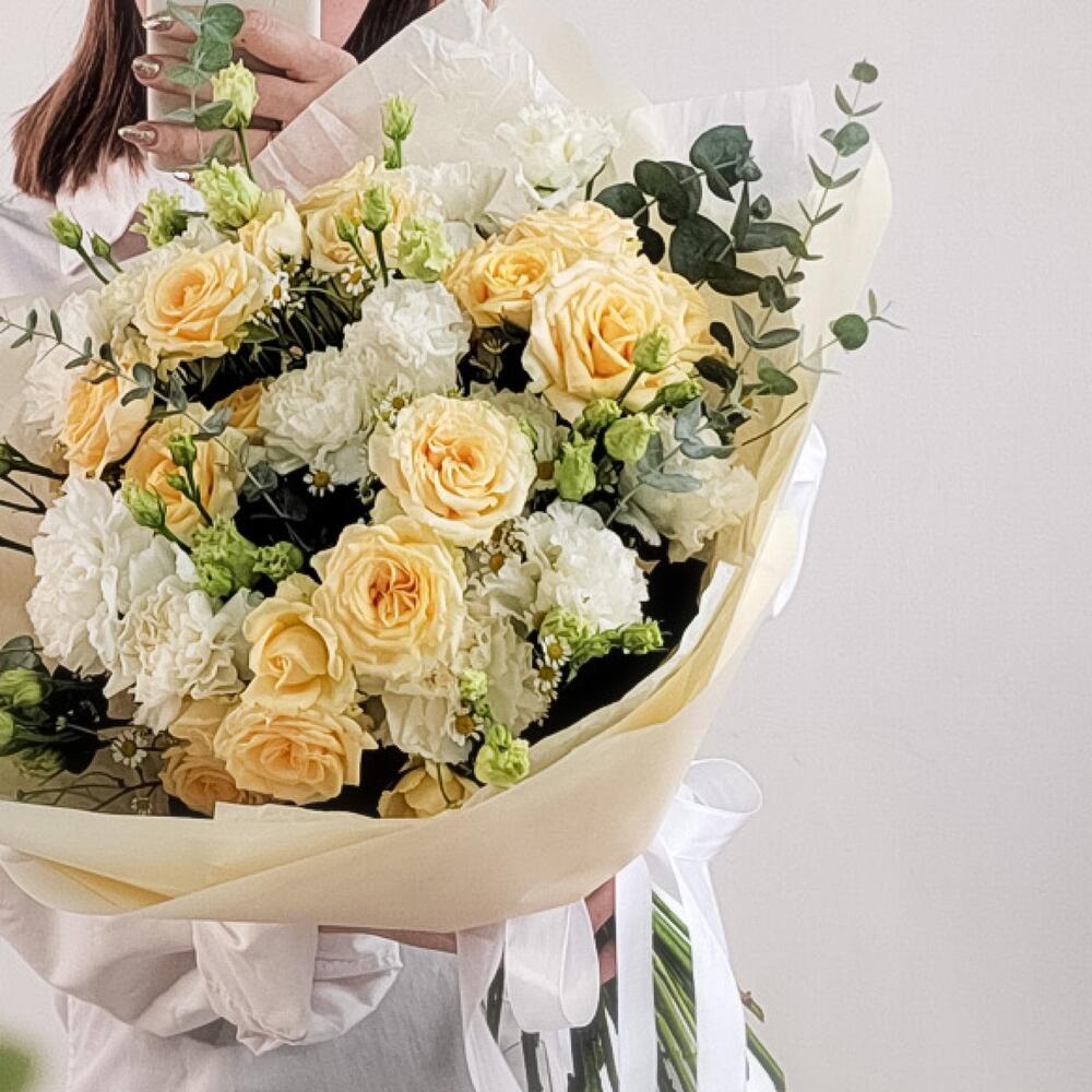 Категории: Гвоздики, Кустовые розы, Лизиантусы, Розы