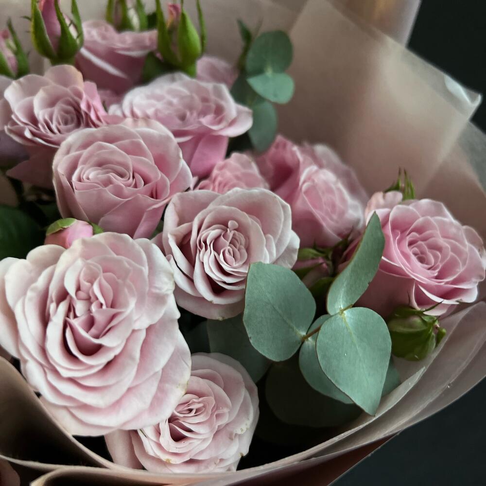 Букет из кустовой ароматной розы и эвкалипта