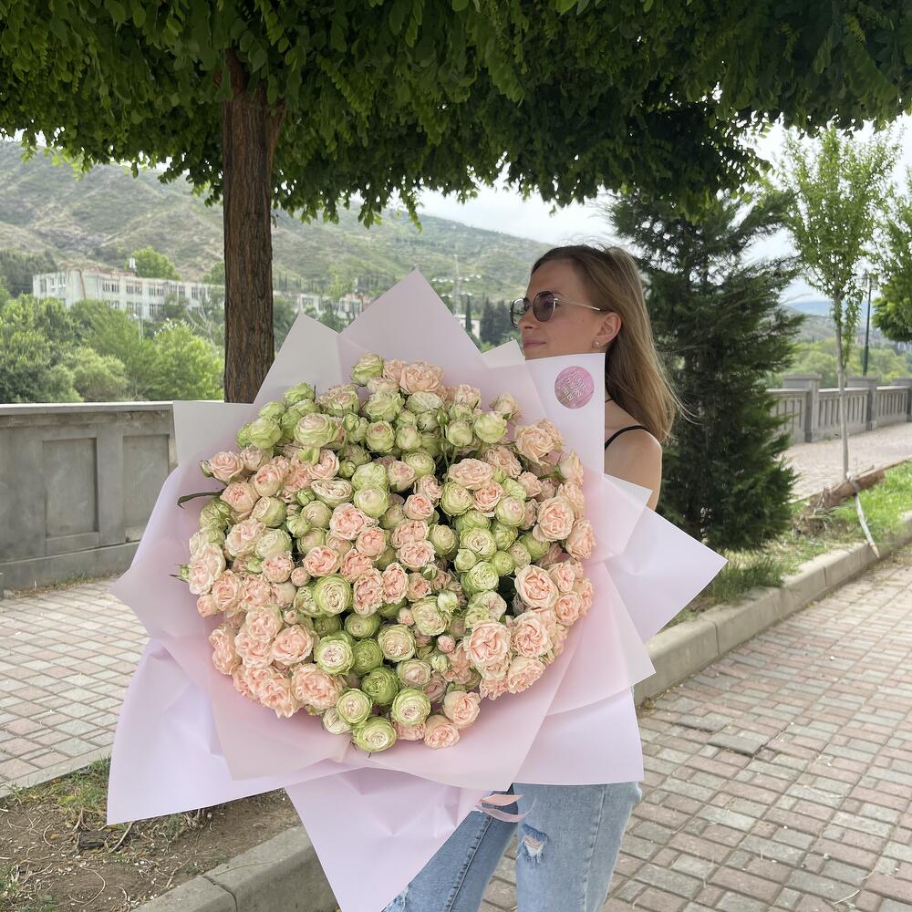 роза кустовая (веток) – 30 шт. Упаковка – 1 шт. Атласная лента – 1 шт.