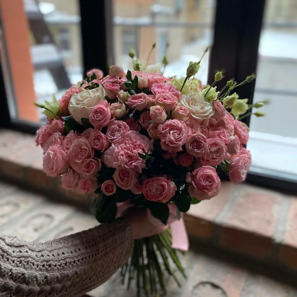 Категорий: Гвоздики, Кустовые розы, Лизиантусы, Пионовидные розы, Розы