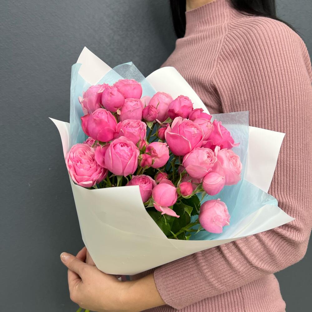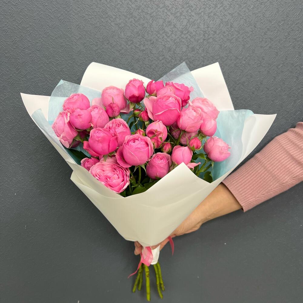 Тишью – 2 шт.Роза пионовидная кустовая – 5 шт.Пленка матовая – 2 шт.
