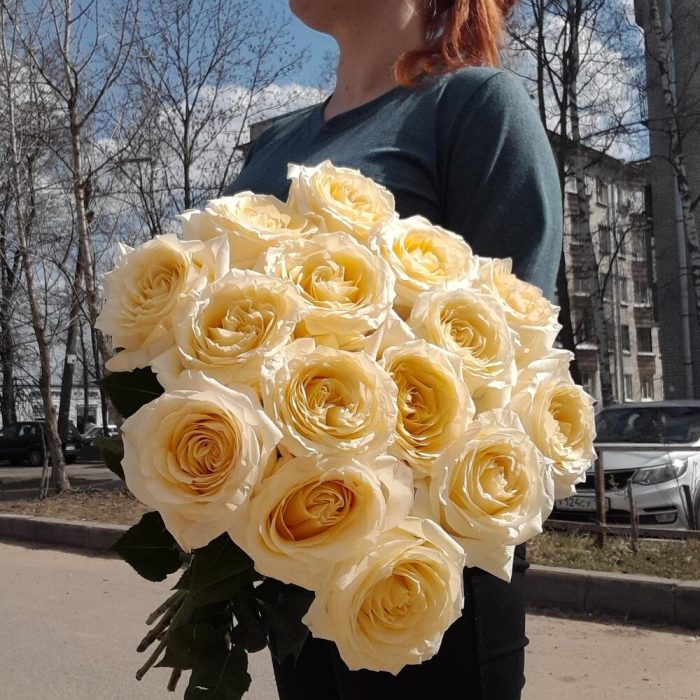 Лента атласная – 3 шт.Роза пионовидная – 15 шт.