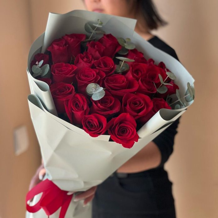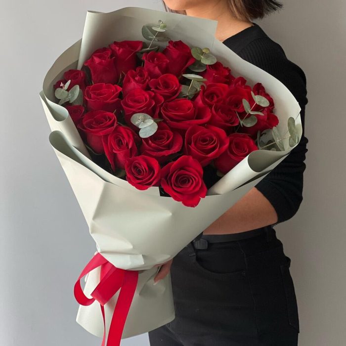 25 красных высоких роз