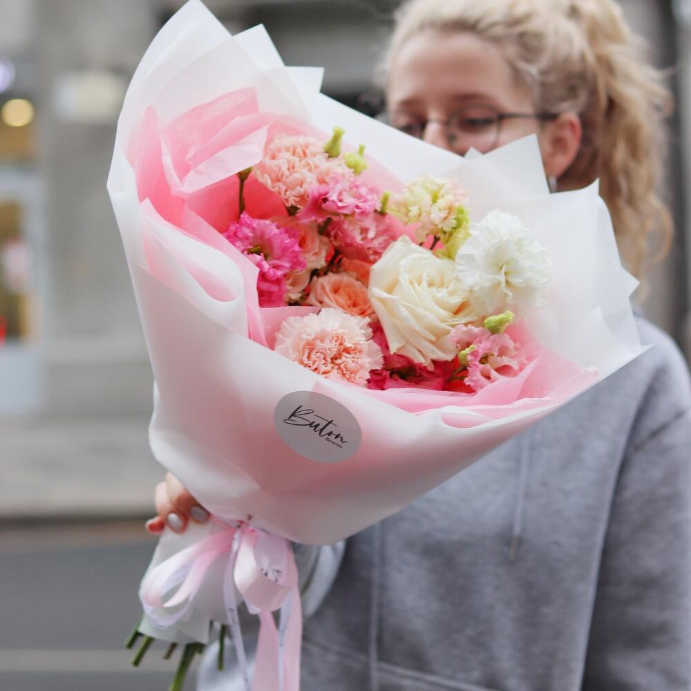 Категорий: Гвоздики, Кустовые розы, Лизиантусы, Пионовидные розы, Розы