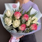 Букет микс из белых и розовых роз