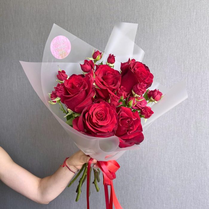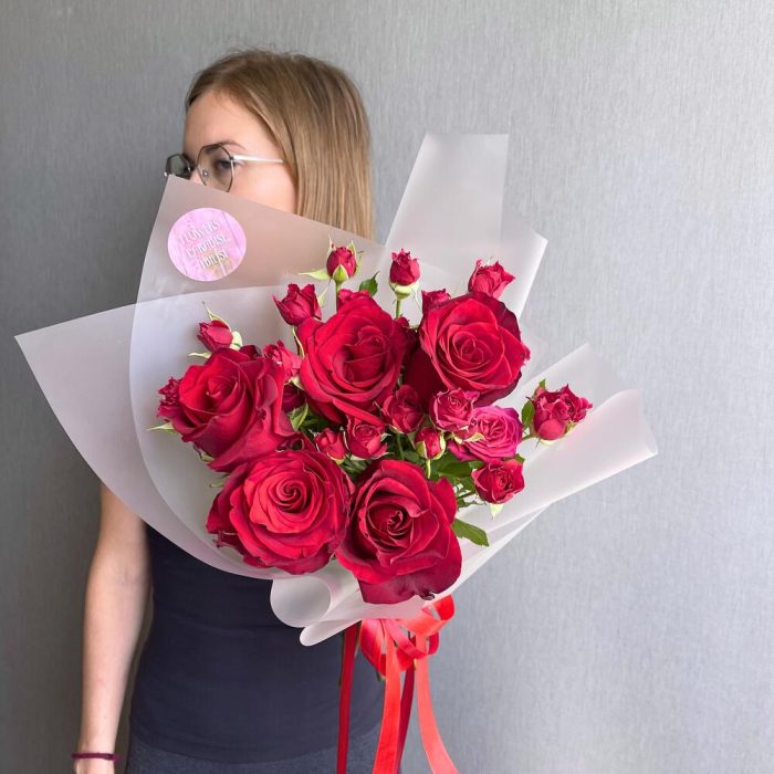 Букет микс из веточной и одноголовой розы