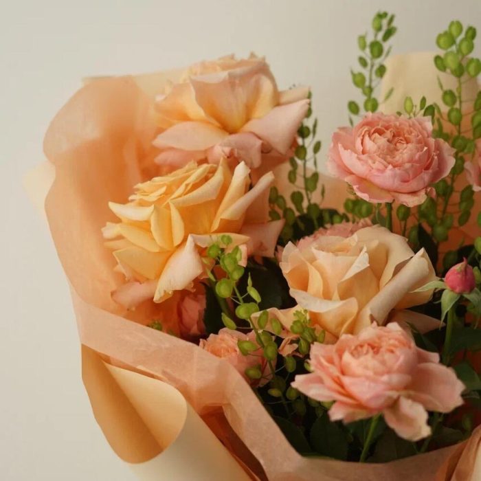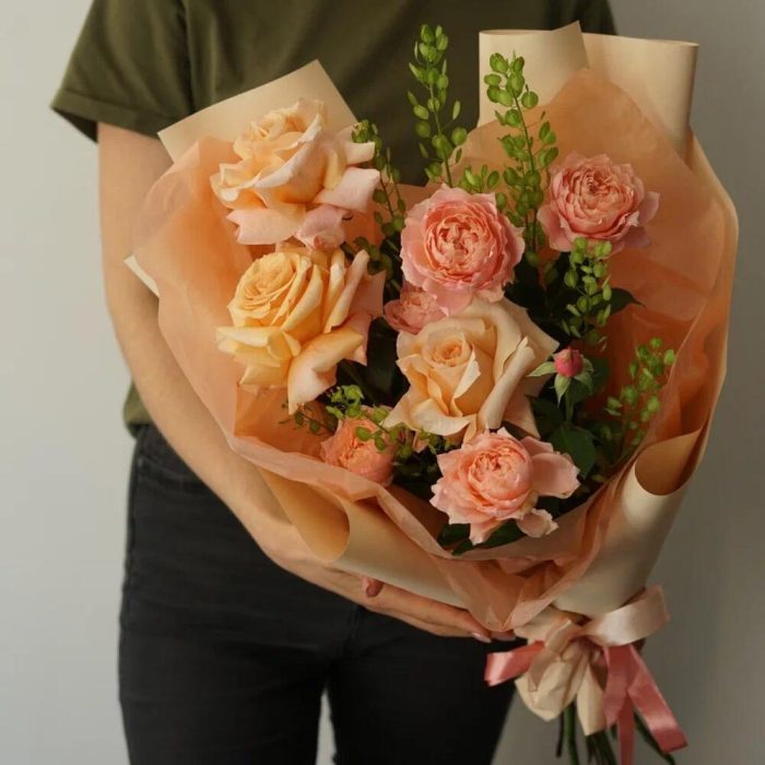 Гринбелл – 5 шт.Упаковка дизайнерская – 1 шт.Роза кустовая julliette – 2 шт.Роза shimmer – 3 шт.