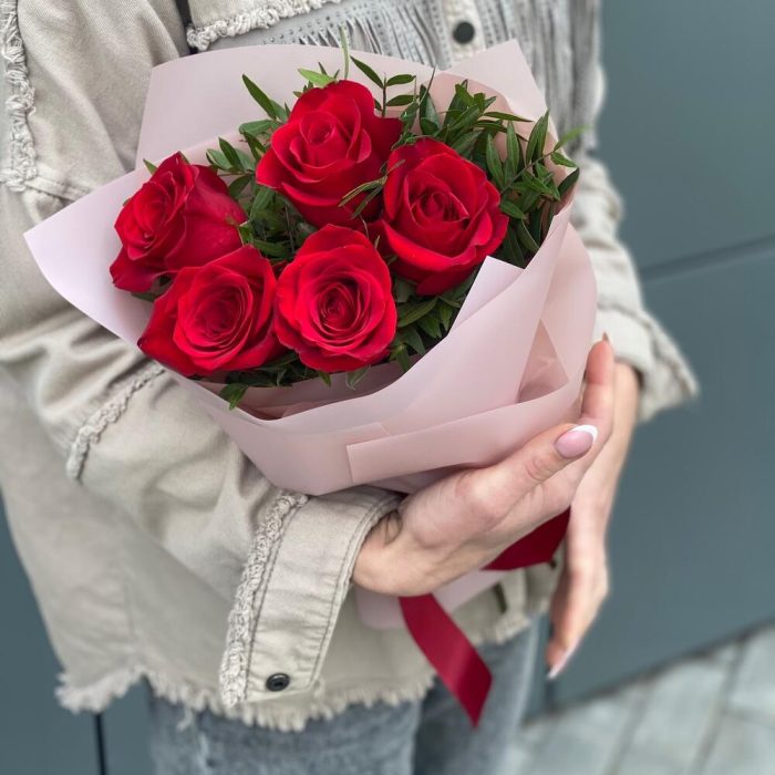 Метки: 5 роз, Красные розы, от 1000 до 2000 руб, Роза Роза 40 см