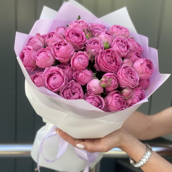Упаковка дизайнерская – 1 шт. Открыточка с вашими пожеланиями – 1 шт. кустовая пионовидная роза misty bubbles – 9 шт.