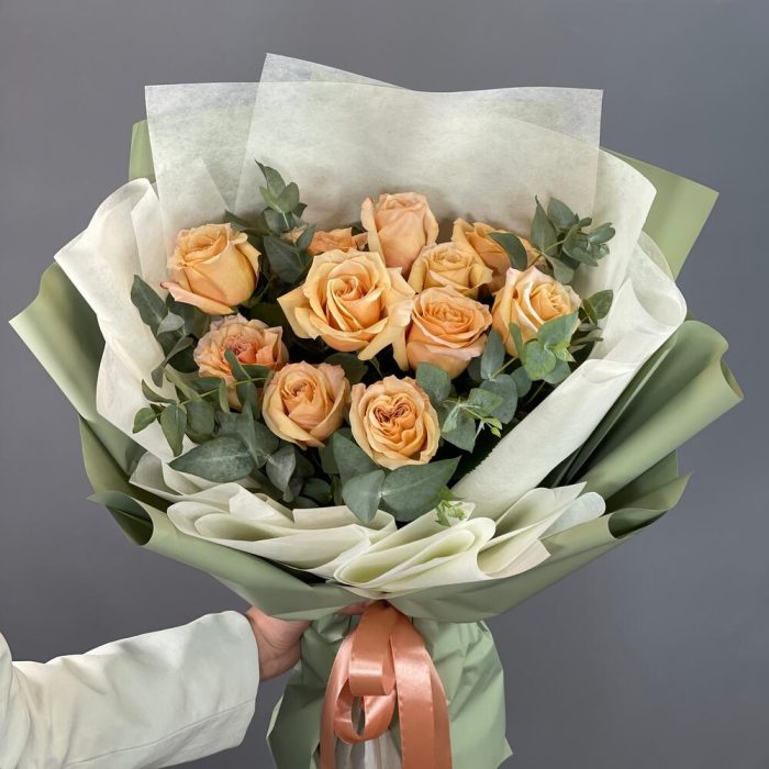 Букет с персиковой розой Фисташковый пломбир