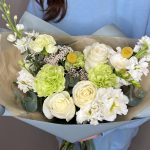 Букет в бело-зелёных оттенках с матиолой и белой розой