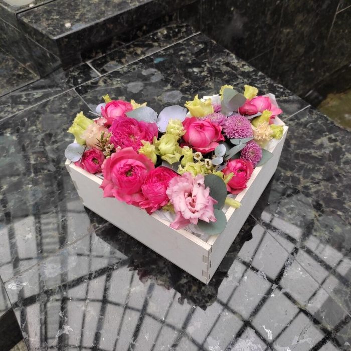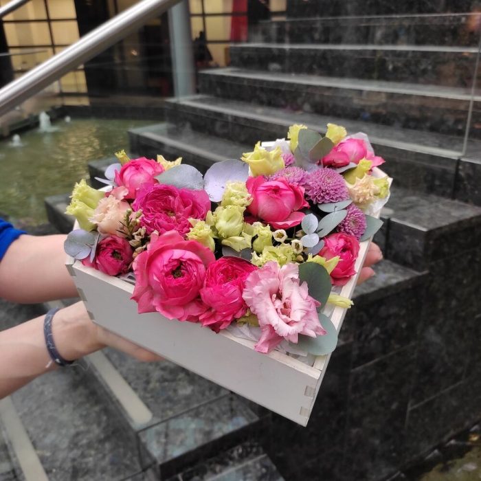 Цветочная композиция в деревянном ящике
