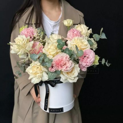 БАРХАТ стойкие розы в бархатной шляпной коробке
