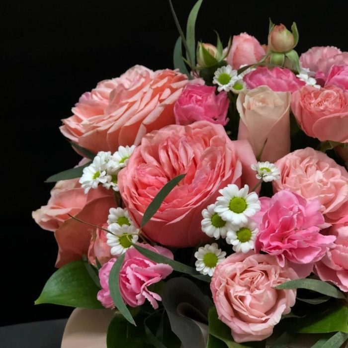 Каждая девушка мечтает о пышном, шикарном букете. Мы собрали целую коробку таких мечт: элегантная шляпная коробка для самой счастливой.