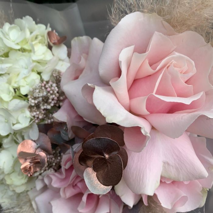 “Эвкалиптическая роскошь” гортензия и пионовидная кустовая роза