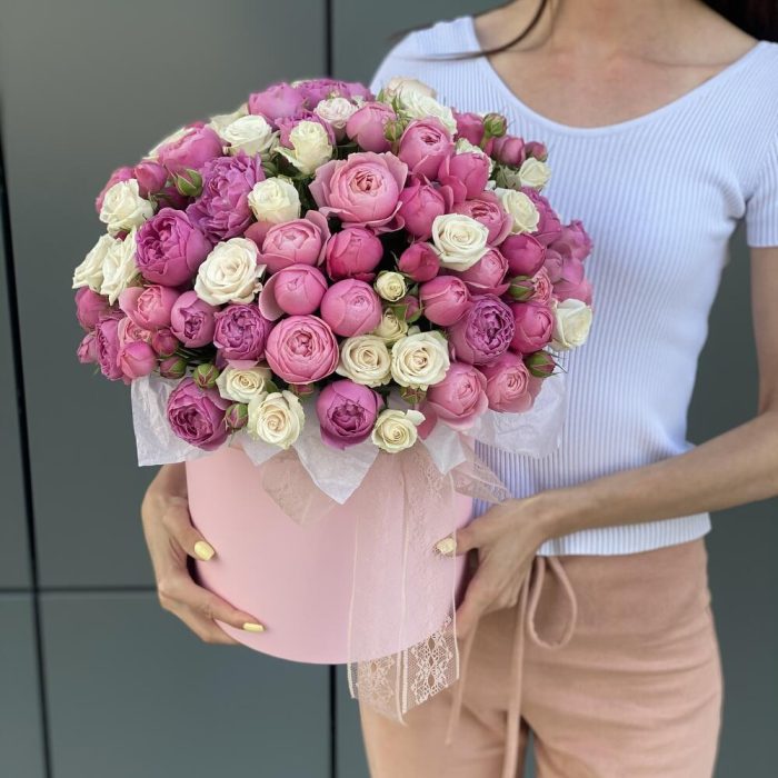 Коробка из микса пионовидных кустовых роз !