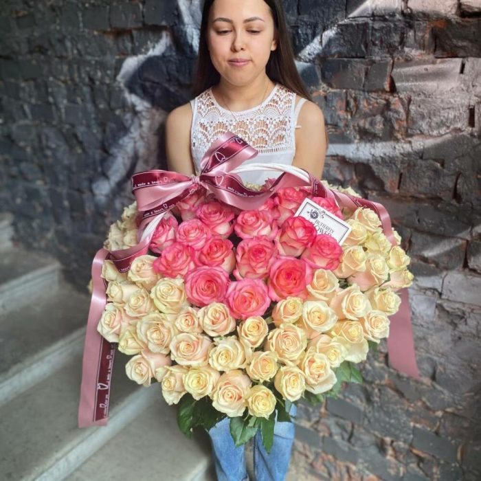 Корзина из 101 розы микс