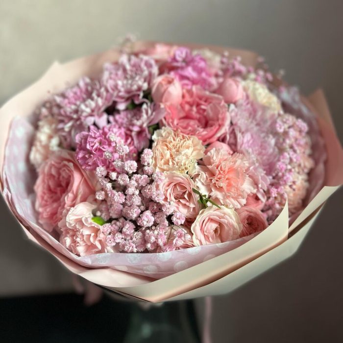Категорий: Гвоздики, Гипсофила, Кустовые розы, Пионовидные розы, Розы, Хризантемы
