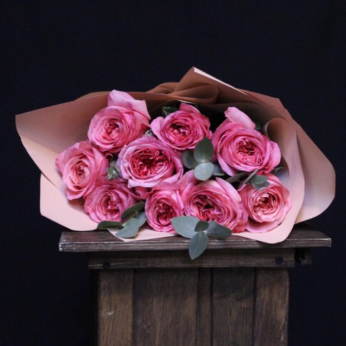 mono bouquet 99 из 9 Пионовидных роз Pink Xpression + эвкалипт
