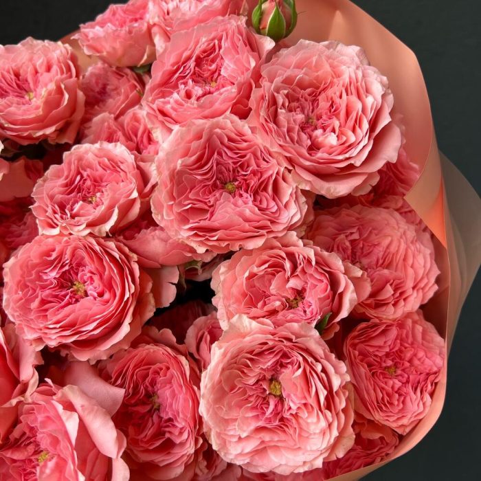 Атласная лента – 1 шт.Кустовая пионовидная роза – 11 шт.декоративная упаковка – 1 шт.