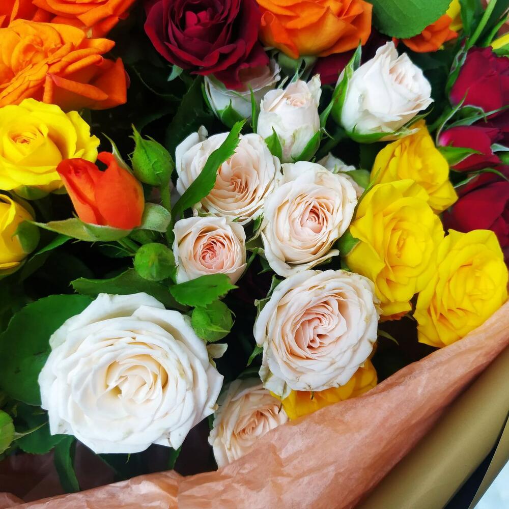 роза кустовая микс – 39 шт.Дизайнерская упаковка – 3 шт.