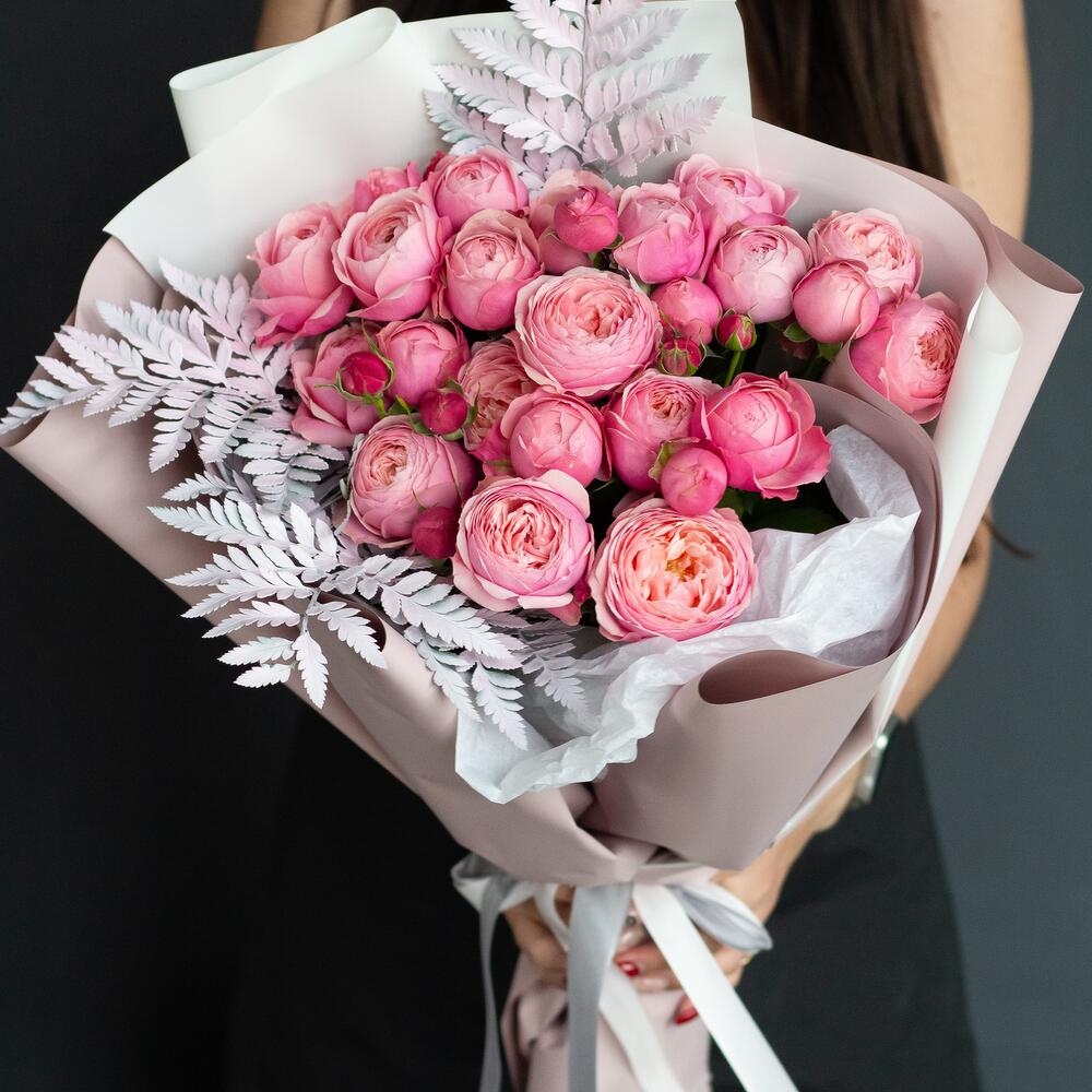 Нежный монобукет пионовидных кустовых роз Сильвия пинк