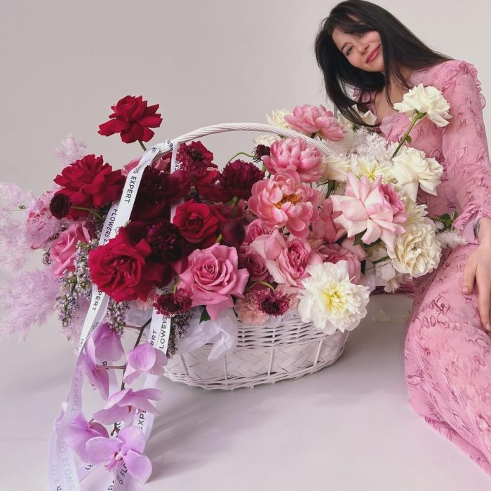 Метки: от 5000 руб, цветы в корзине