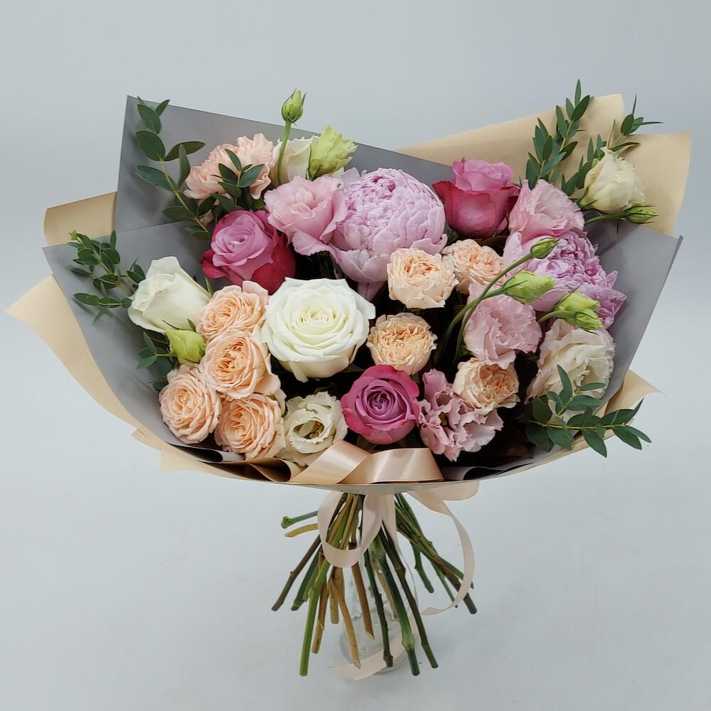 Категорий: Гвоздики, Кустовые розы, Лизиантусы, Пионы, Розы