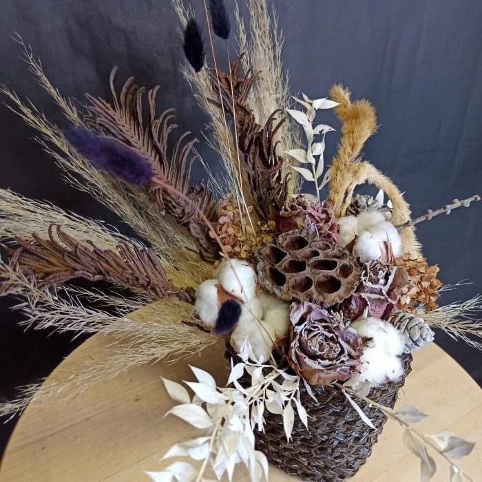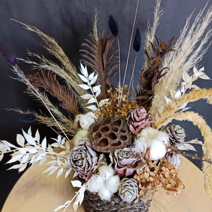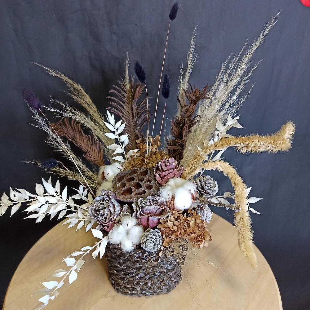 Кустовые розы, Лизиантусы, Розы, Сухоцвет