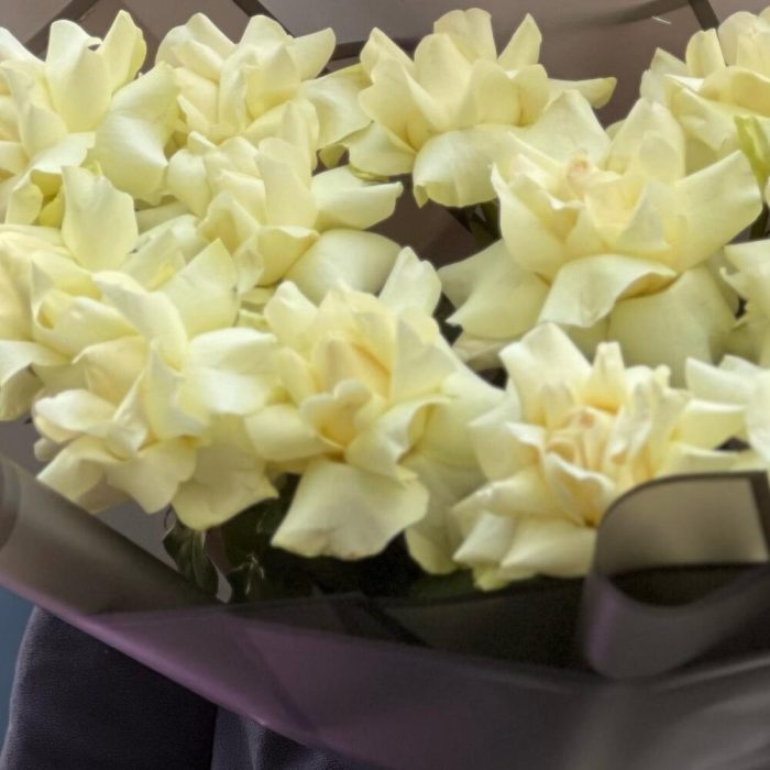 Бомбический букет из белых роз в стильном оформлении станет замечательным подарком для ваших близких