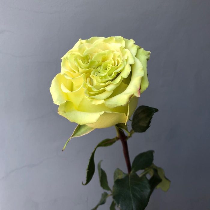 Пионовидная Роза Лимонад – роза с крупными чашевидными бутонами, которые собраны из огромного количества волнистых лепестков нежно салатового цвета с кремово-белой серединой. Обладает легким сладким «лимонадным» ароматом зеленого яблока.Высота 60-70см
