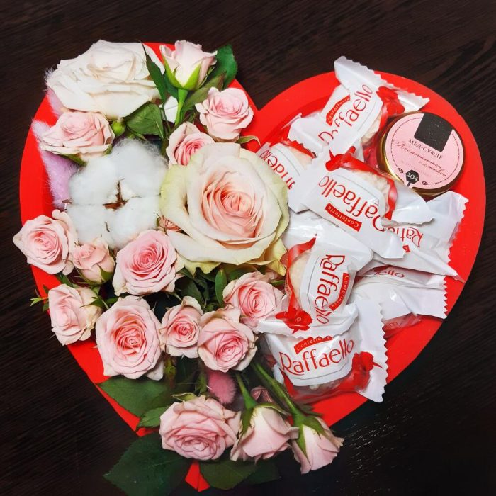 Сердце с цветами, рафаэлло и мёдом