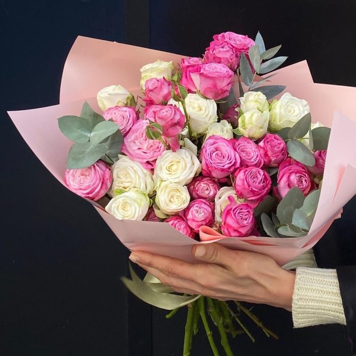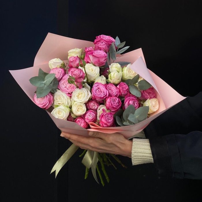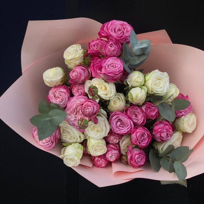 Гвоздики, Кустовые розы, Лизиантусы, Пионовидные розы, Розы