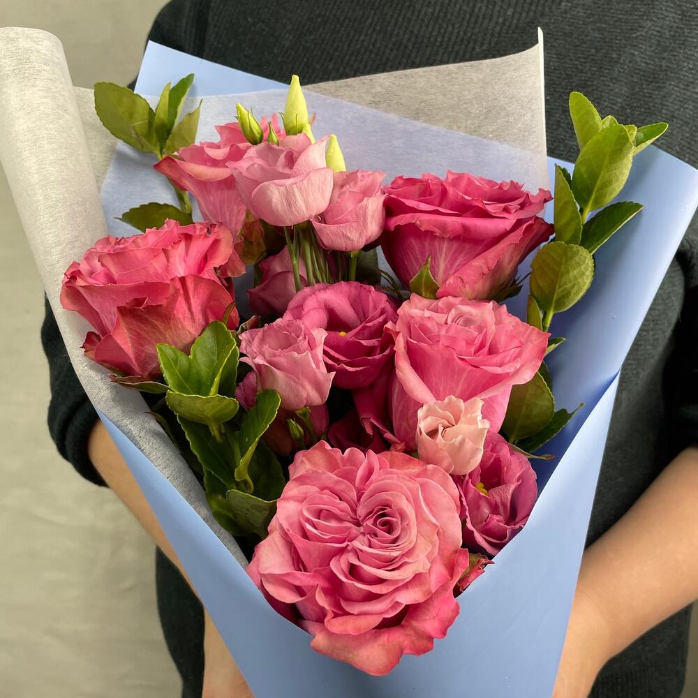Кустовые розы, Лизиантусы, Розы, Сухоцвет