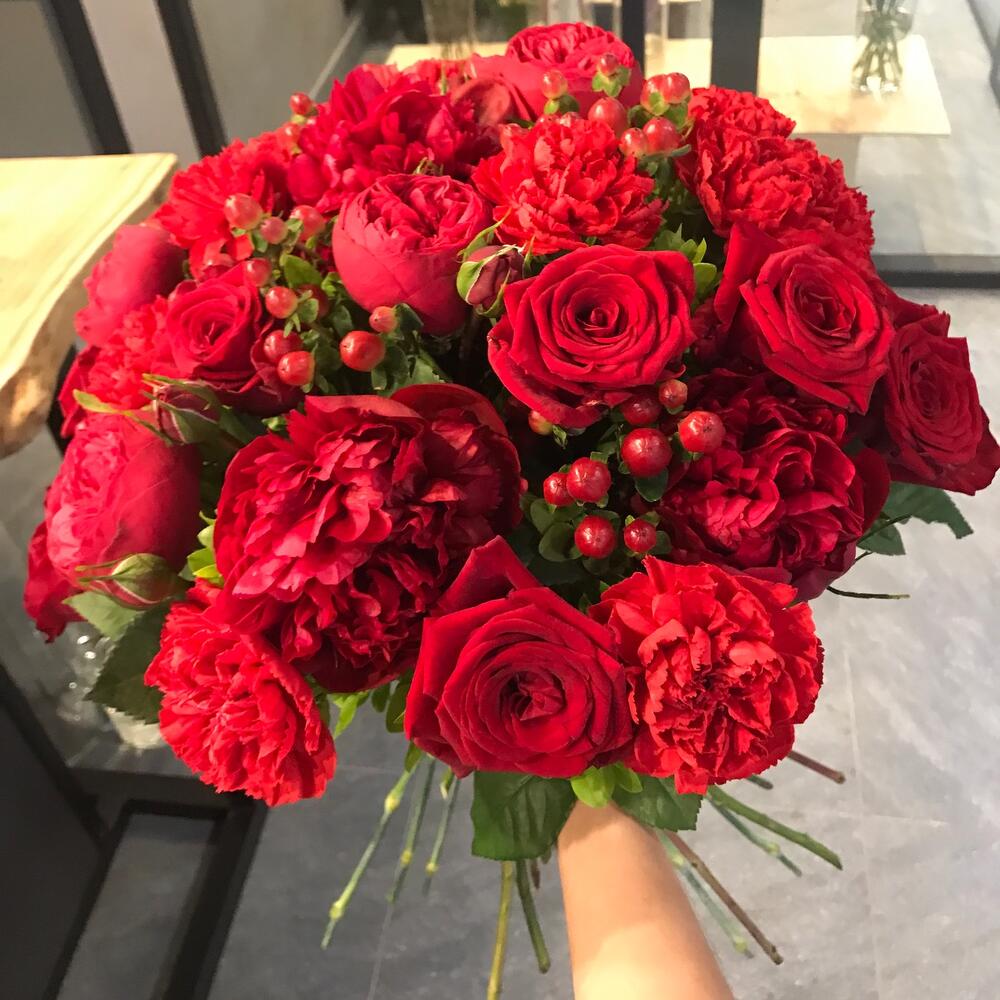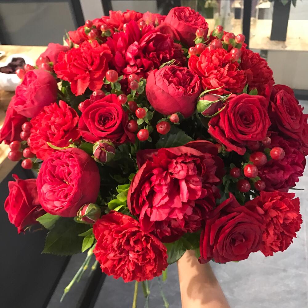 Гвоздики, Кустовые розы, Пионовидные розы, Розы
