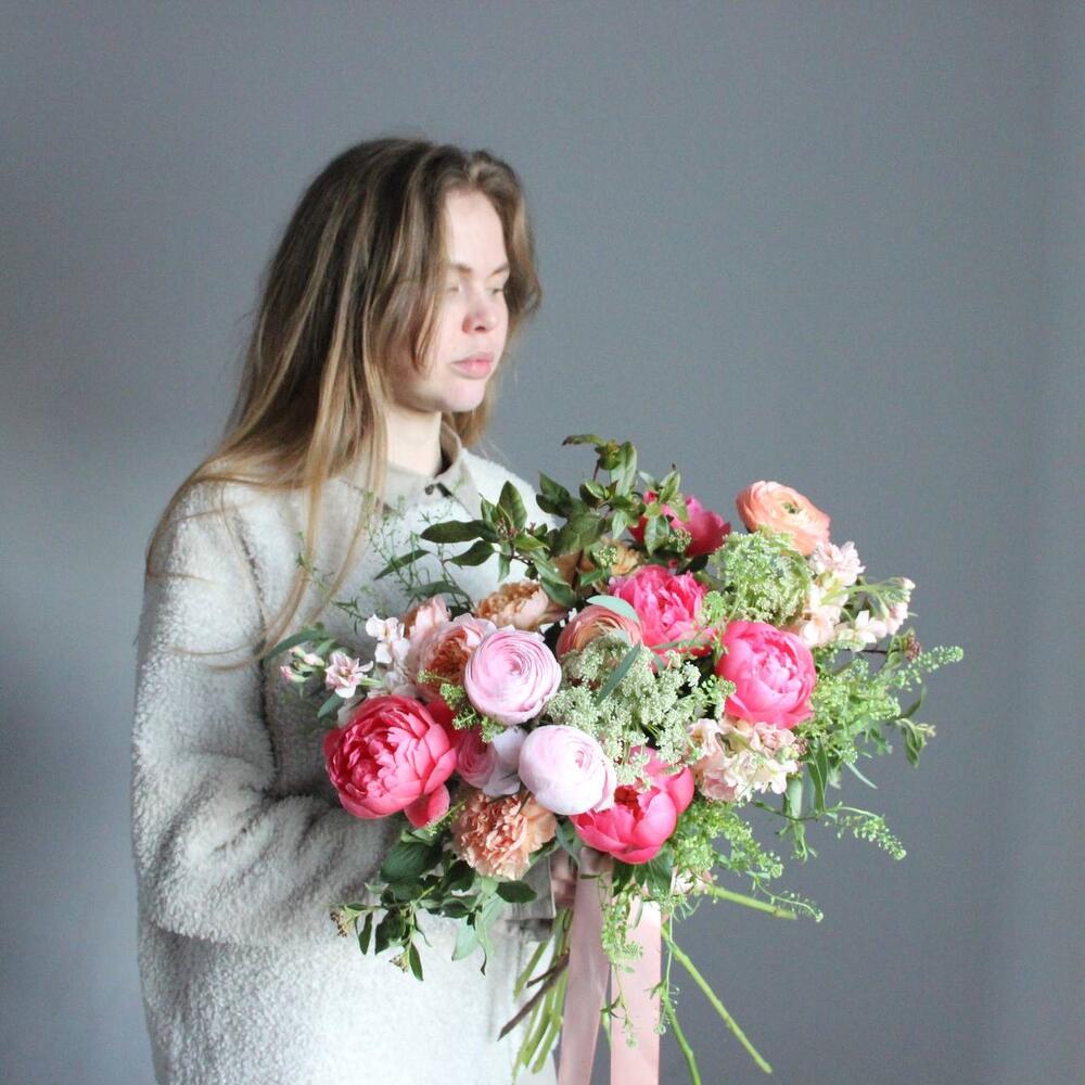 Весенний - букет с пионами и ранункулюсами