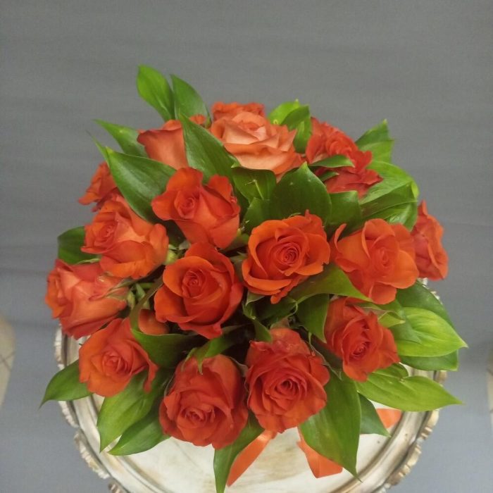Роза – 17 шт.Зелень – 10 шт.Коробка шляпная – 1 шт.Оазис флористический – 1 шт.