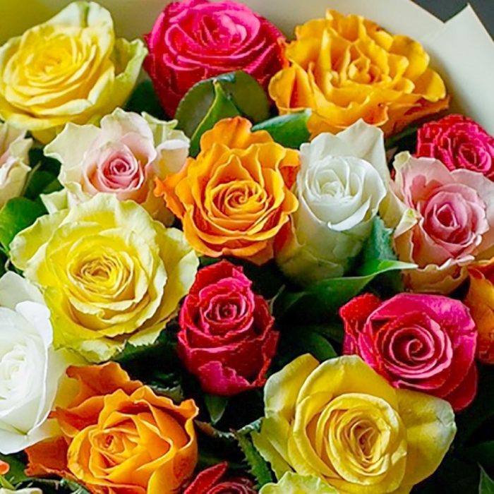Яркий микс кенийских розочек в стильном монобукете. Такой букет подойдёт для любого повода: День Рождения, именины, годовщина свадьбы, рождение ребенка, 8 марта, День Святого Валентина, выпускной и т.д. Можно вручить маме, сестре, подруге, коллеге, любимой.